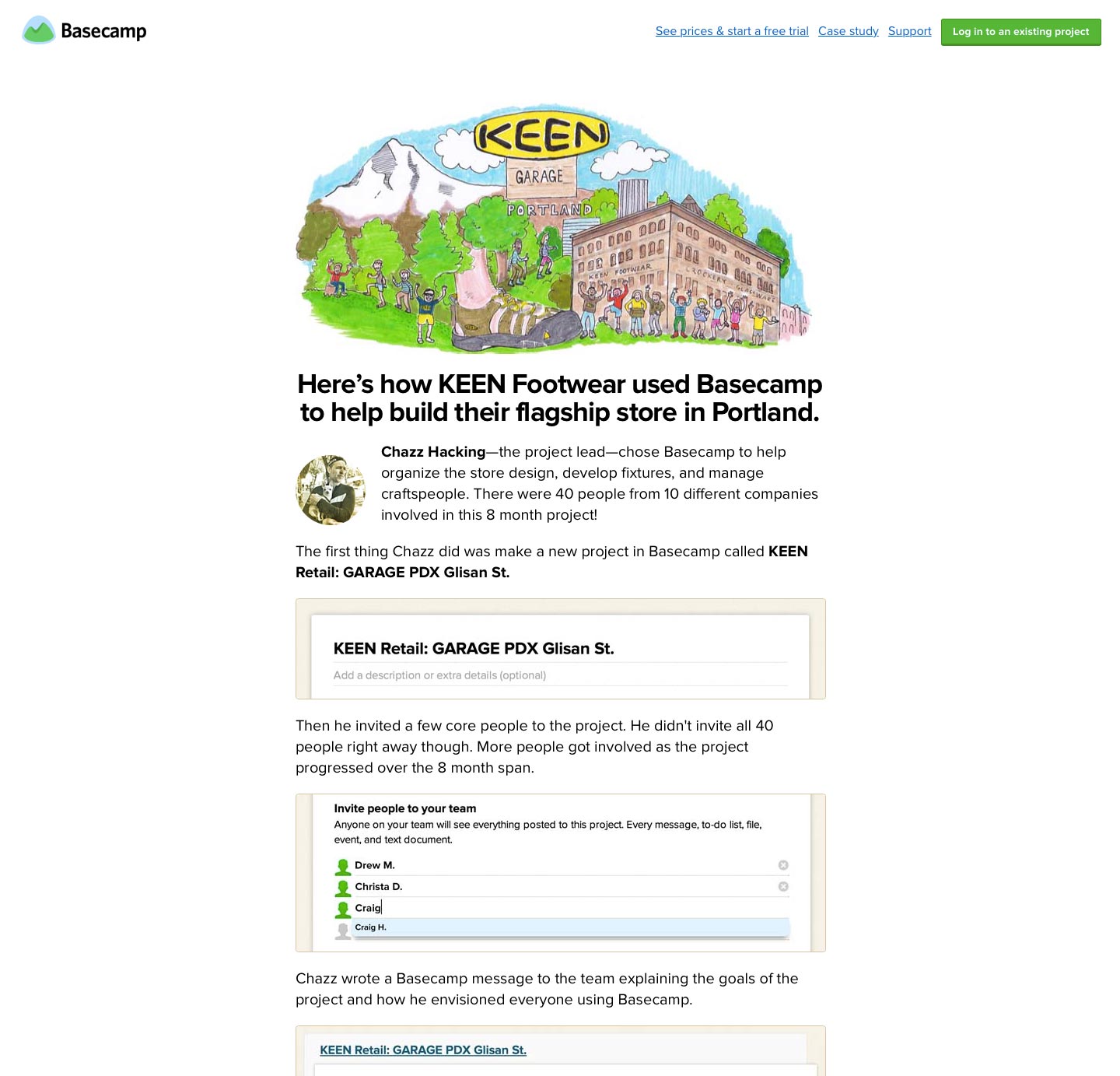 They literally walk you through the process of how a footwear company built their flagship store, complete with screenshots. It’s simply the best way to see how Basecamp is used without actually using it yourself.