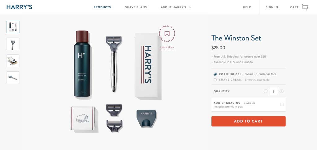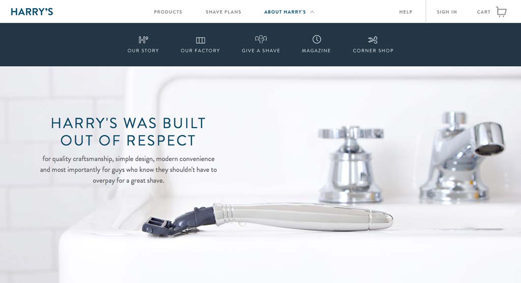 Harry’s do a great job of telling their story, as you’ll find in their about section. Here’s the very first wording on the page:
