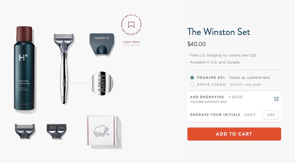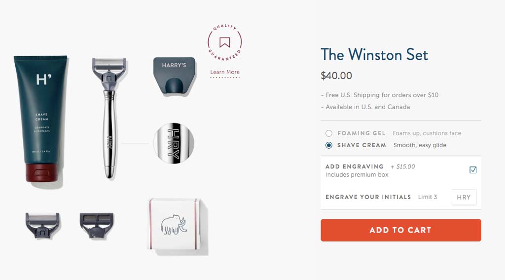 The product pages include fantastic looking images. As items are arranged into sets, they are laid out neatly. This practice is known as “knolling”. It’s basically a term for laying out things in a neat fashion. For Harry’s in particular, it exudes quality and there’s something to knolling that gives a real sense of attention to detail.