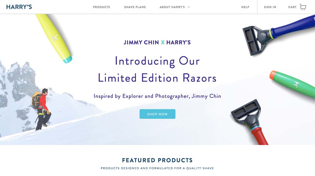 At the time of writing, Harry’s have a promotion on special editions of their razors, using some mountain climbers. They set up this interesting microsite to promote them and it is very well designed.